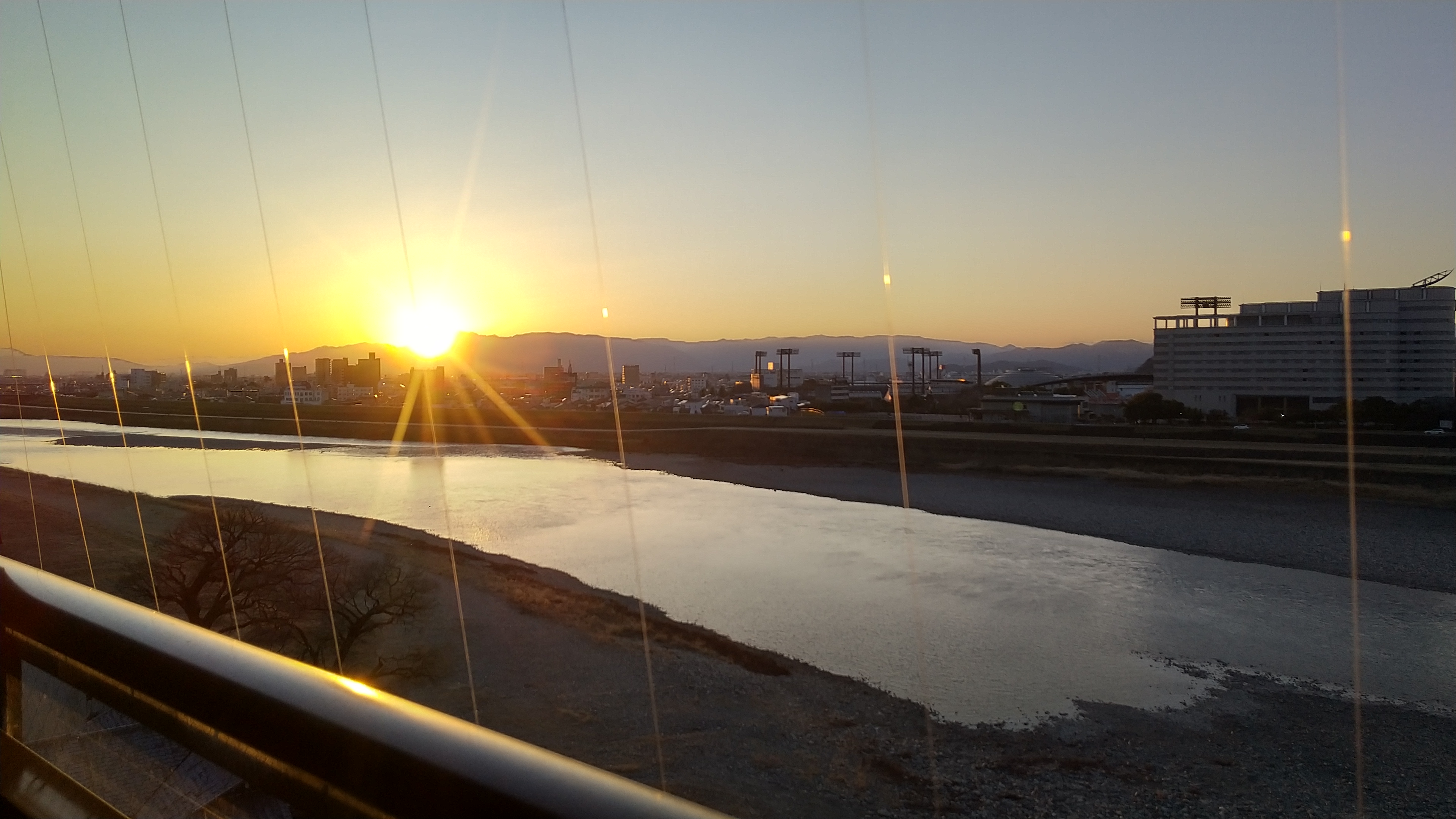 従妹は20年ぶりぐらいに会いました。でも昔よく一緒に遊んでいたので、まるでしょっちゅう顔を合わせているかのように話せる。嬉しいことです。その日の晩は叔父・叔母・従妹、私たちの5人で会食、思い出話に花が咲きました。今回の宿は「長良川温泉十八楼」長良川のほとりに立つ老舗です。ベランダには長良川が見渡せる展望風呂。夕日が沈む景色は絶景でした。