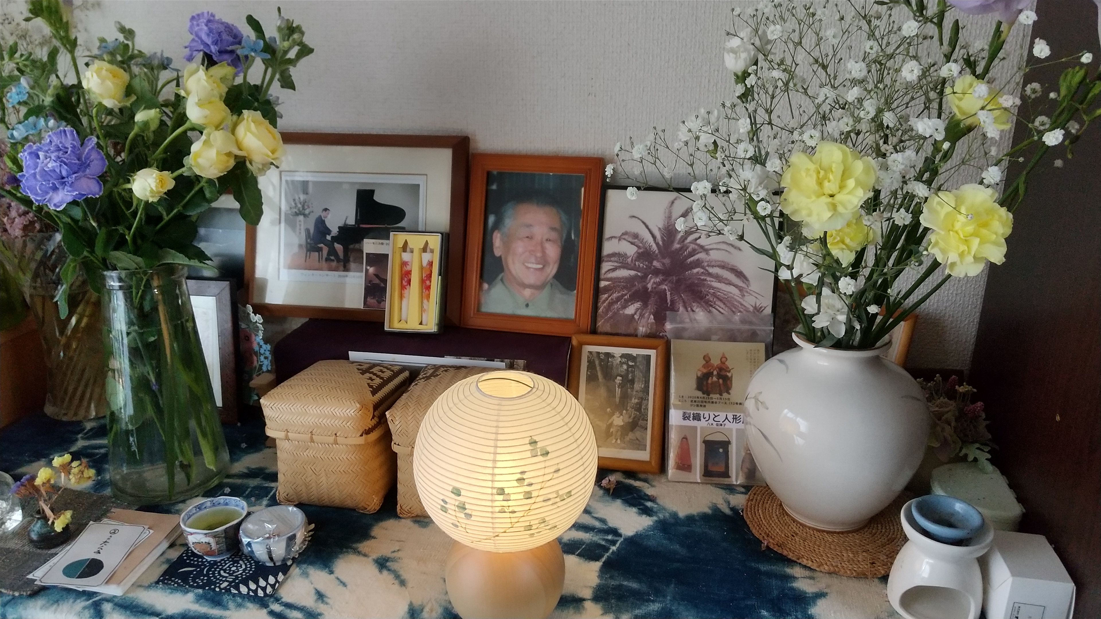 今回の旅では素敵な岐阜提灯をアレンジしたランプを見つけ、父と兄の遺影の前に飾りました。