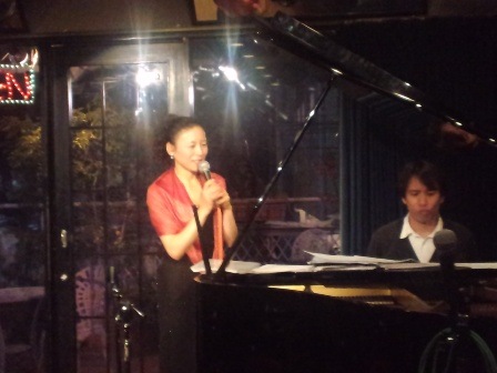 初めてのMクアトロ、初めてご一緒するピアニスト、田村文利さん、ものすごーく久しぶりの3ステージ・・・ということでかなりナーバスになってしかるべき状況でしたが、ピアノの状態もとてもいいし、田村さんのピアノはお人柄そのままに一人で突っ走らず、さりとてこちら任せでなく(いや、任せられないだけか)、寄り添うような、やさしくリードするような・・・・素敵なピアノだし、お客様は皆さん温かだし・・・で、すっかりよい気分で楽しく唄わせていただきました。
