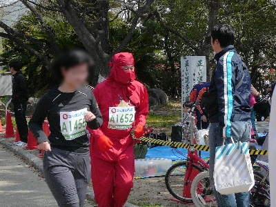 ご近所のどなたかがかけられたのでしょう。この間のファンランのときに使ったたすきかもしれませんね。