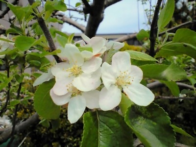 近所の歩道に林檎並木があります。