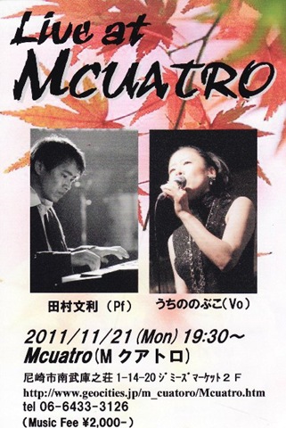 月曜日ですが・・・是非是非お越しください。半年ぶりの「タムタム」こと田村さんとの共演です。
