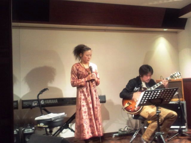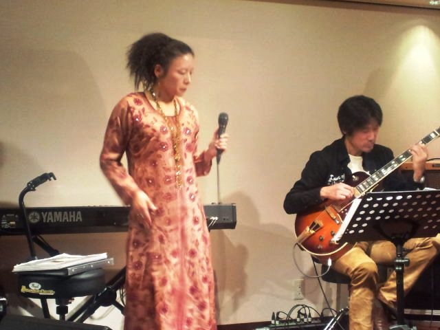 初めてお邪魔するお店、初めてご一緒するベーシスト、お店の名前も勘違いという体たらくで、とても緊張しましたが、お店も繁華街のバーなのにアットホームで、ママのカラッとした、それでいて品のあるお人柄ゆえでしょう(しかもとってもハンサムな美女!)、お客様もとても感じのよいかたばかりで、暖かい拍手に、お花まで頂いて、うちの、幸せ一杯で唄わせていただきました。