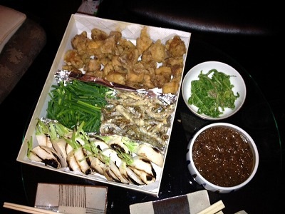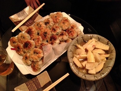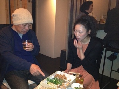 ライブの後、地元のものをふんだんに使ったお料理を頂いて、その味に一同大感激。蕪を網で焼いたものを梅肉をつけていただくのも、筍も、小魚(名前を聞いたのに失念)の揚げ物も、ニラ饅頭も、茄子と冥加の漬物も、どれも唸ってしまうほど美味でございました。