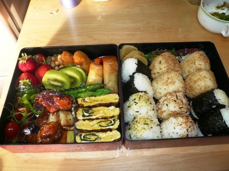 昨日は、朝から、ちょっと堅いお仕事があったので、それなりの堅い服装をして、夜のための衣装を詰め込んだスーツケースをゴロゴロ押して出かけました。午前中に仕事を終えて、駅の総菜屋さん(隅に椅子が置いてあって、そこで食べることが出来るようになっている)で、おにぎりを頬張ってから京都に向けて出発しました。時間は充分にあったのですが、午前中の立ち仕事でかなり疲労を感じていたので、夕方の予定の前に、ひと寝入りしておきたかったので、お昼ご飯の時間が惜しかったのです。中途半端な時間だったからでしょうか、電車が混んでいなくて、座れてラッキーでした。電車でまず一休み。(爆睡)