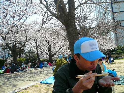 夕方に車で拾ってもらって比叡平に向かいました。車は鴨川沿いを北上します。散りかけの桜がまた風情があって、なんともいい感じ。街は観光客で溢れています。一緒に行ったメンバー二人は京都在住、見慣れた景色なので、なんの感慨もなさそうでしたが、わたしは、後部座席に陣取り、おのぼりさんのように、きょろきょろと京都観光を楽しみました。