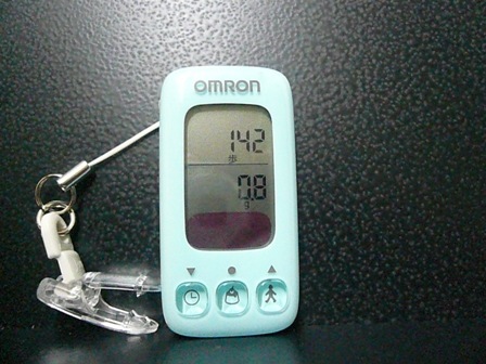 今朝からの歩数、142歩。まだ使い方がイマイチ把握できておりません。0.8gというのはなんだろ?