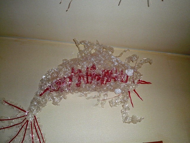 という感じ。すぐ上の「にょろにょろ」のような顔が、部屋いっぱいにありました。