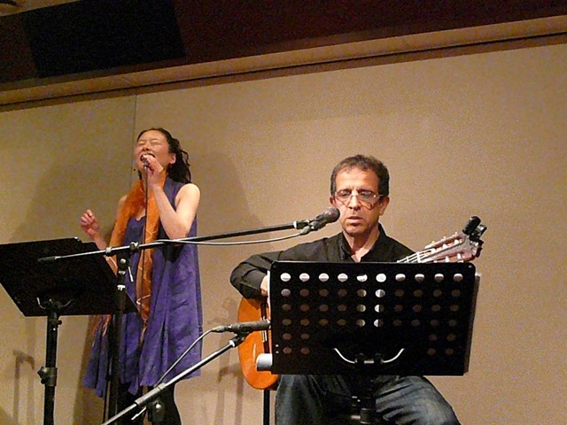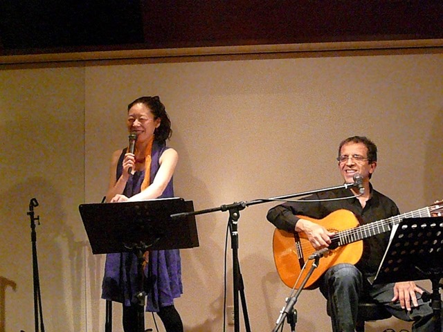 テーマに合わせて、今回のカルロスのギターはクラシックギター。亡くなったお友達の遺品のそのギターの音色、昔から好きだったので、わたしもご機嫌で唄わせていただきました。
