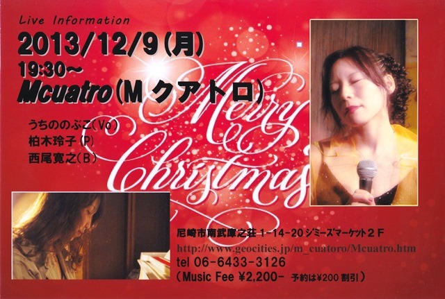 久しぶりにご一緒するピアノの柏木さんと、初めてご一緒するベースの西尾さん、楽しみです。