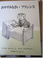シリーズモノだったと思います。確か、この本では一人っ子だったフランシス(アライグマだったんだ。普通の熊だと思っていました)には妹が生まれて、ちょっと妹に嫉妬したり意地悪したりしていたような気が・・・。