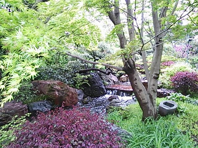 展示を楽しんだ後は、庭園を一回り。雨上がり、露に濡れた新緑が美しかったです。