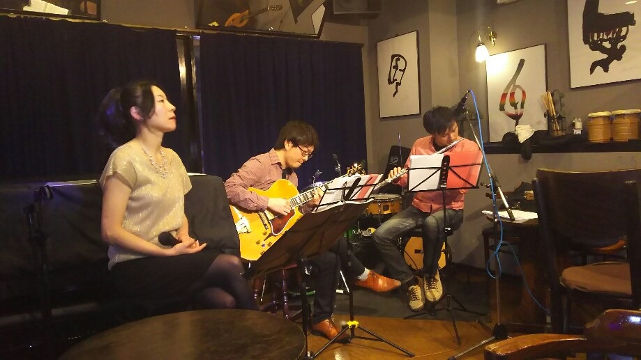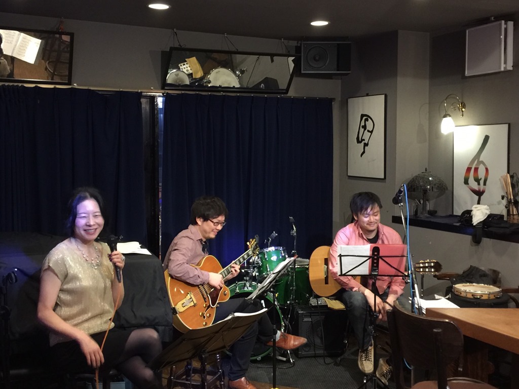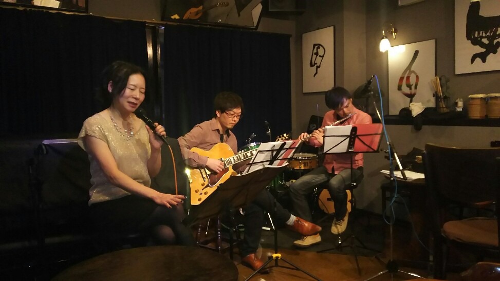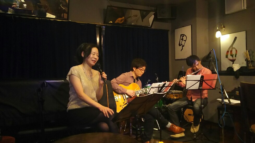 今日はジャズストの説明会があったようで、帰りに寄ってくださったミュージシャンが大勢いらっしゃいました。歌いながら、通りを歩く人たち、いつも来てくださるお客様や、マスターの中野さんを見て、高槻には本当に良い縁を頂いているなあ・・・としみじみしておりました。(あ、唄は元気に歌いましたよ)