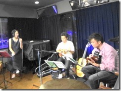Mクアトロでのライブにお越しくださった皆様、ありがとうございました。2台のアコースティックギター、7弦ギター、カヴァコ、そしてフルート、「こんな編成で、こんな風に演奏してみたい」という長年の思いが、しかも素晴らしいミュージシャンとの共演で実現した、夢のようなライブでありました。演奏のお二人、絶対に相性抜群、と思っていましたが、想像していた以上で、「歌手いらんやん」と思われるのでは・・・と怖れるほど。実際ついていくのに必死で覚えている曲でさえ、耳ではお二人の絶妙なバランスに聴き入りつつ、目は譜面に釘づけ。どの程度「一体になれたのか」、というとまだまだ・・・。それはとってももったいない、というか自分としても悔しいところでした。