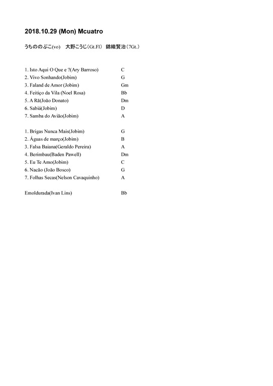 29日月曜日はMクアトロにて、大野こうじさん、錦織賢治さんと一緒にブラジル音楽のライブでした。来てくださった皆様、ほんとうにありがとうございました。