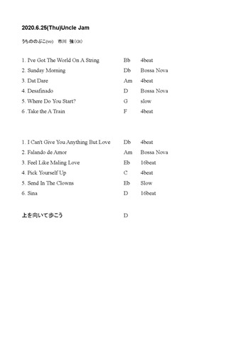 UncleJamでの市川強さんとのデュオライブにお越し下さった皆様、ありがとうございました。偶然とはいえ、UncleJamさんのライブ再開第1弾を務めさせていただいてとっても光栄でした。
