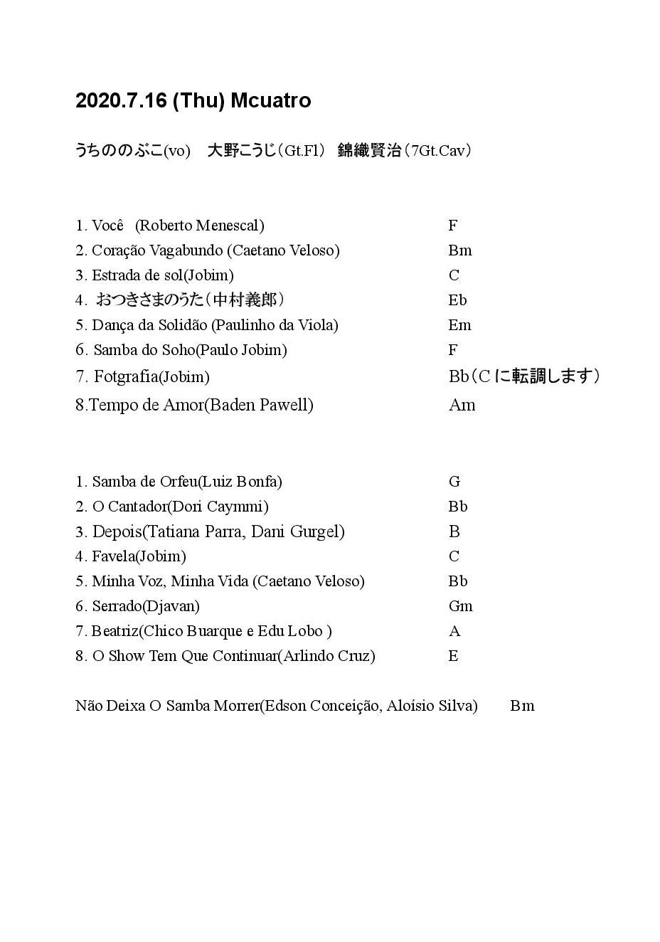 Mクアトロでのライブに来てくださった皆様、ありがとうございました。消毒、扉を開けての換気、お席はひとつづつ間を空けて・・・と準備してくださったかつみママも、ありがとうございました。