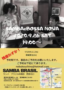 次回のSamba Brasilでのライブは12月19日(土曜日)です。