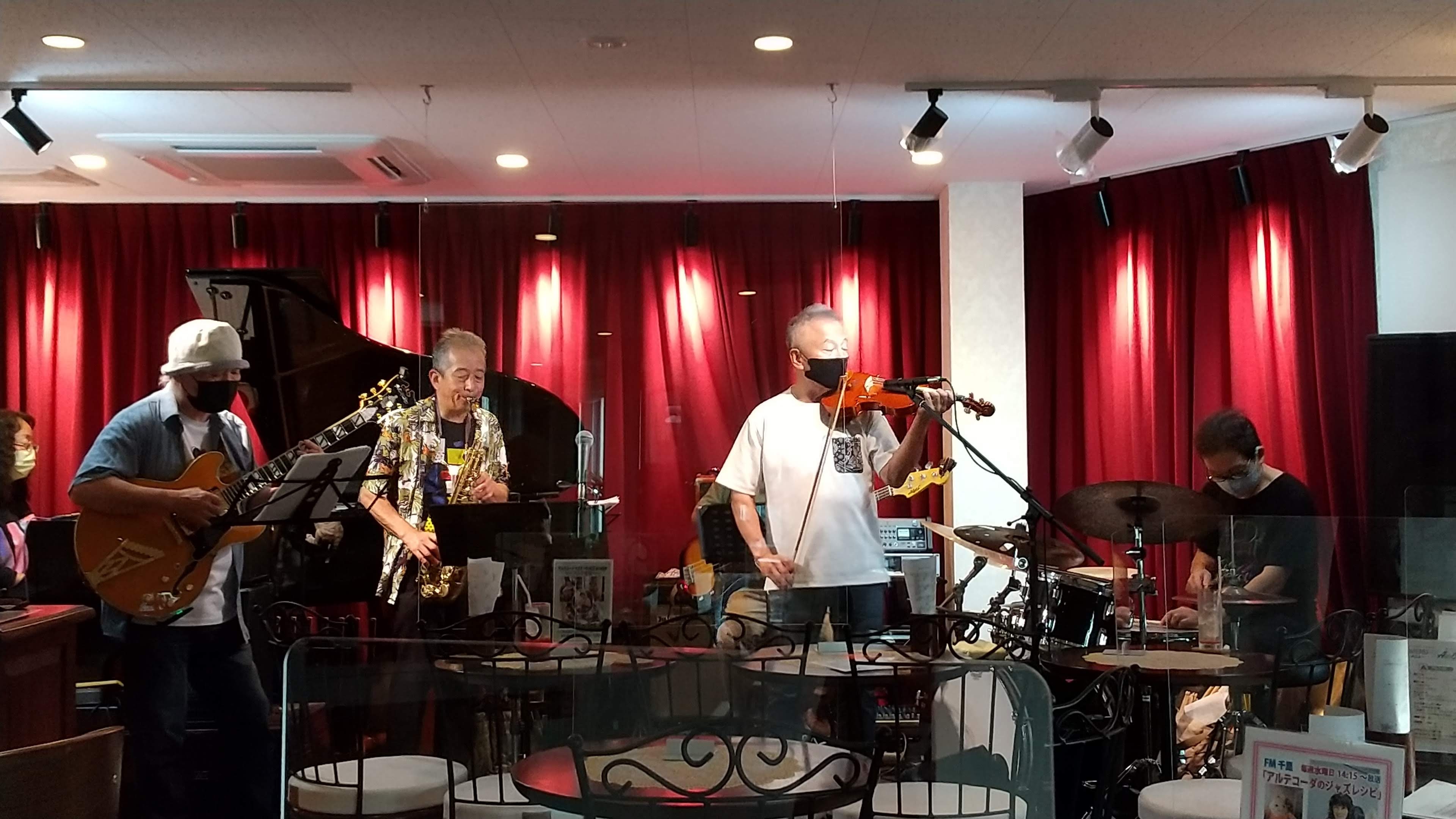 ピアノのあっちゃんも「Eのブルースだから、入って」の一言で果敢に舞台に上がり、全く知らないブルースの曲(ブルースはコード進行の型が決まっている音楽ですから可能と言えば可能なんですが、やはり曲によって細かな部分が違うので、それを瞬時に聴きとり、他のメンバーの演奏に乗っていくのはかなりの技術と度胸が必要だと思います)を演奏していました。