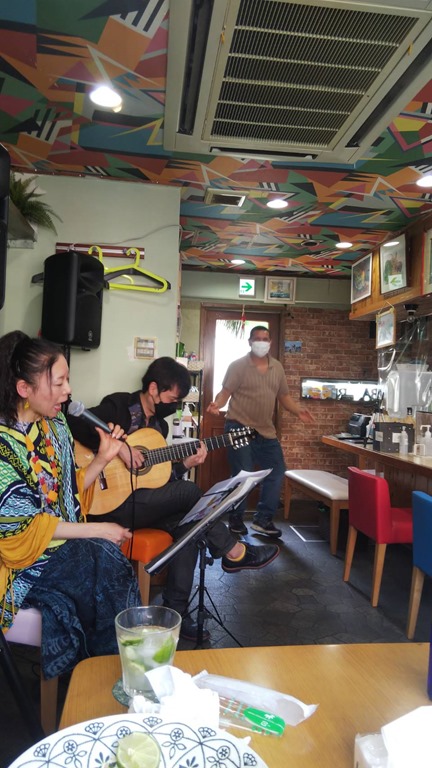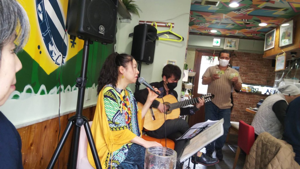 何度も延期になったサンバブラジルでのライブ、いるだけで楽しくなってしまうカラフルで明るいお店、シェフの作る絶品のブラジル家庭料理、今回ヘルプで入ってらしたBONITA(かわいいお嬢さん、という意味。本当に可愛らしくて10代?なんて思っていたらご結婚もされている大人の女性でした)もノリがよくて、お客様もノリがよくて、Nikkieさんのギターの響きも最高で、「幸せ」いっぱいのライブとなりました。