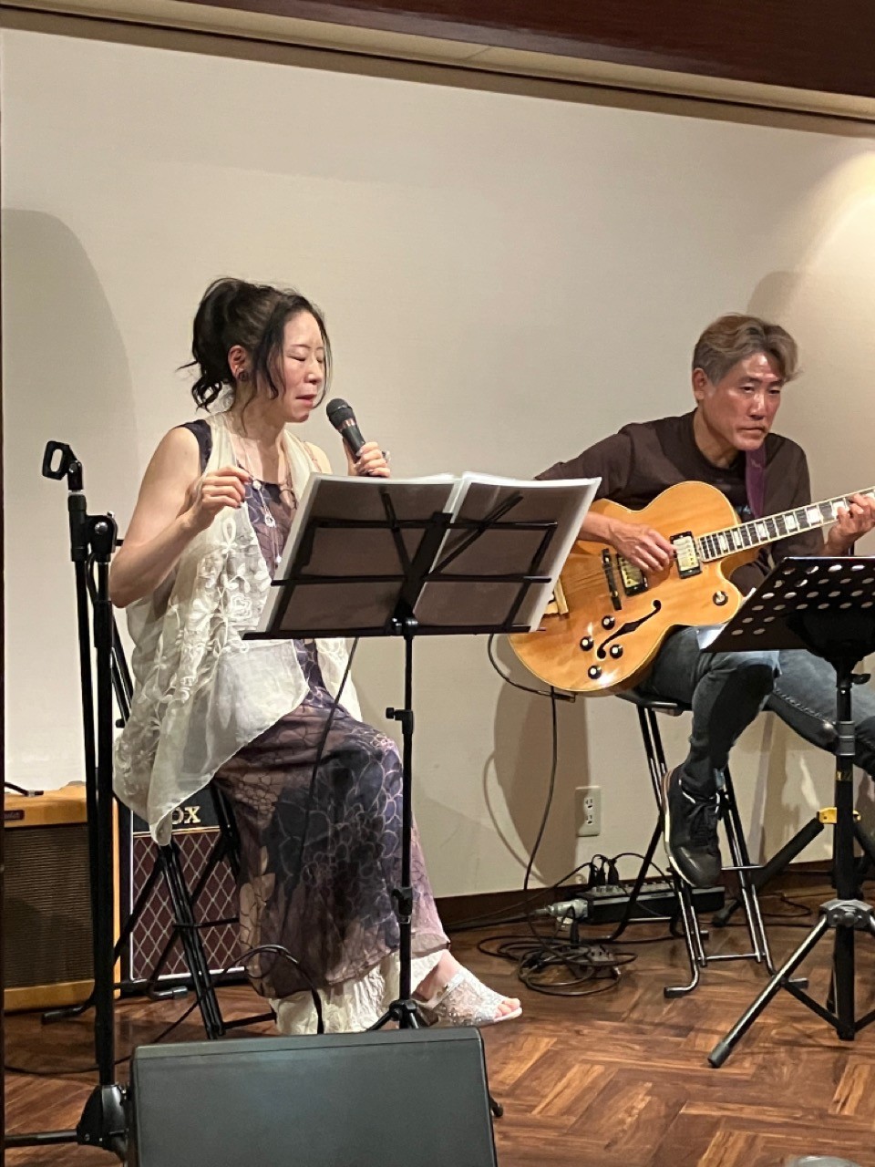 久しぶりのジャズライブ(「ジャズ」と言えるのか?というと甚だ疑問ですが・・・・「ブラジルに特化しないライブ」とでも言いましょうか)で、選曲するのも練習するのも楽しくて仕方がありませんでした。諸々反省点はあるものの、市川さんの繊細なギターの音色に包まれて幸せな気持ちで歌わせていただきました。いつものことではありますが、ライブ終了後は放心状態。お客様にもお話ししましたが、いつも出汁が出きったあとの煮干しになった気分なのです。全部エネルギーが出ていきました・・・。という感じ。それでも幸福感はすごいのですけれどね。