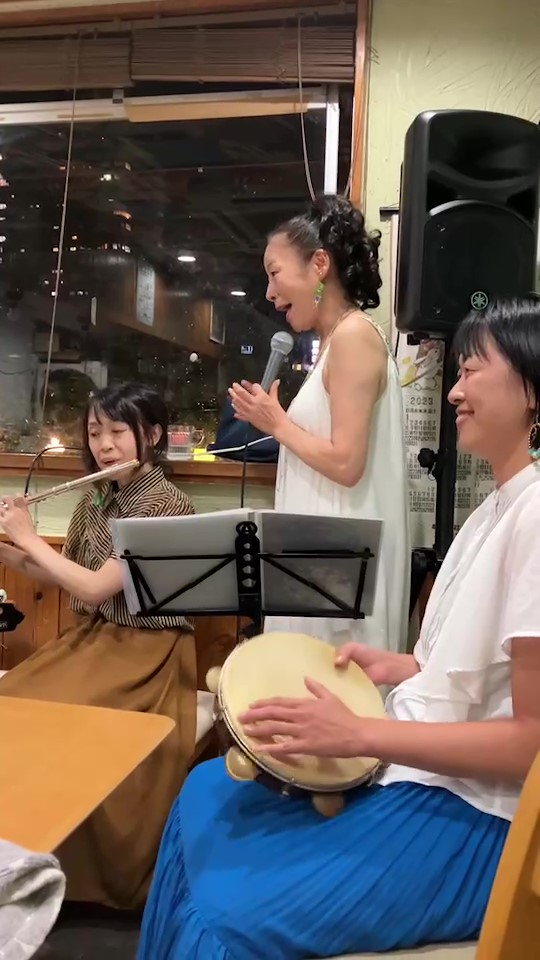 フルートの梅田さん(ぺーちゃんさん)とパーカッションに歌に、なんでもこいのChiekoさんは、どちらも関西サンバ界(そんなものあるのか???あまり好きな言い方ではありませんがまあざっくりと)で大変ご活躍されていて、いつもお名前を拝見していた憧れの方たち、そんなお二人も演奏に加わってくださったおかげで本当にいつもにも増して楽しく歌うことができました。