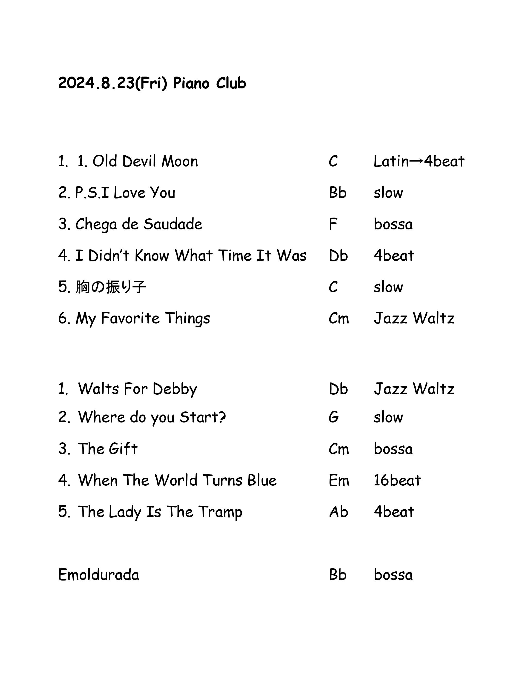 ピアノクラブでのライブに来てくださった皆様、暑い中、本当にありがとうございました。