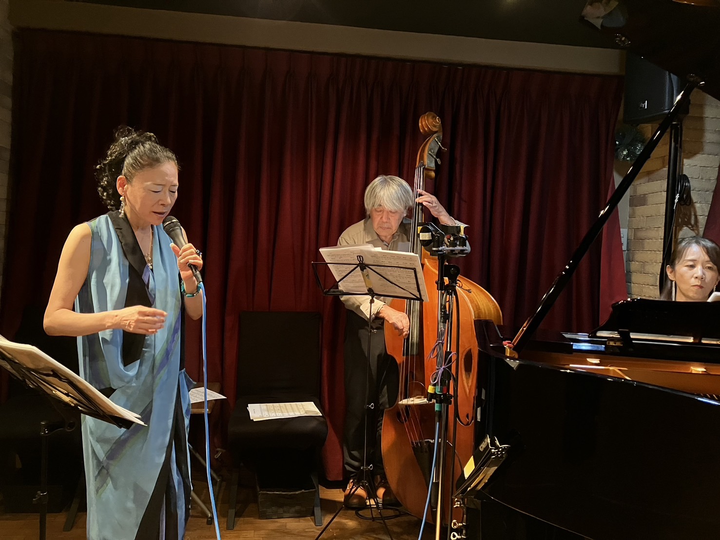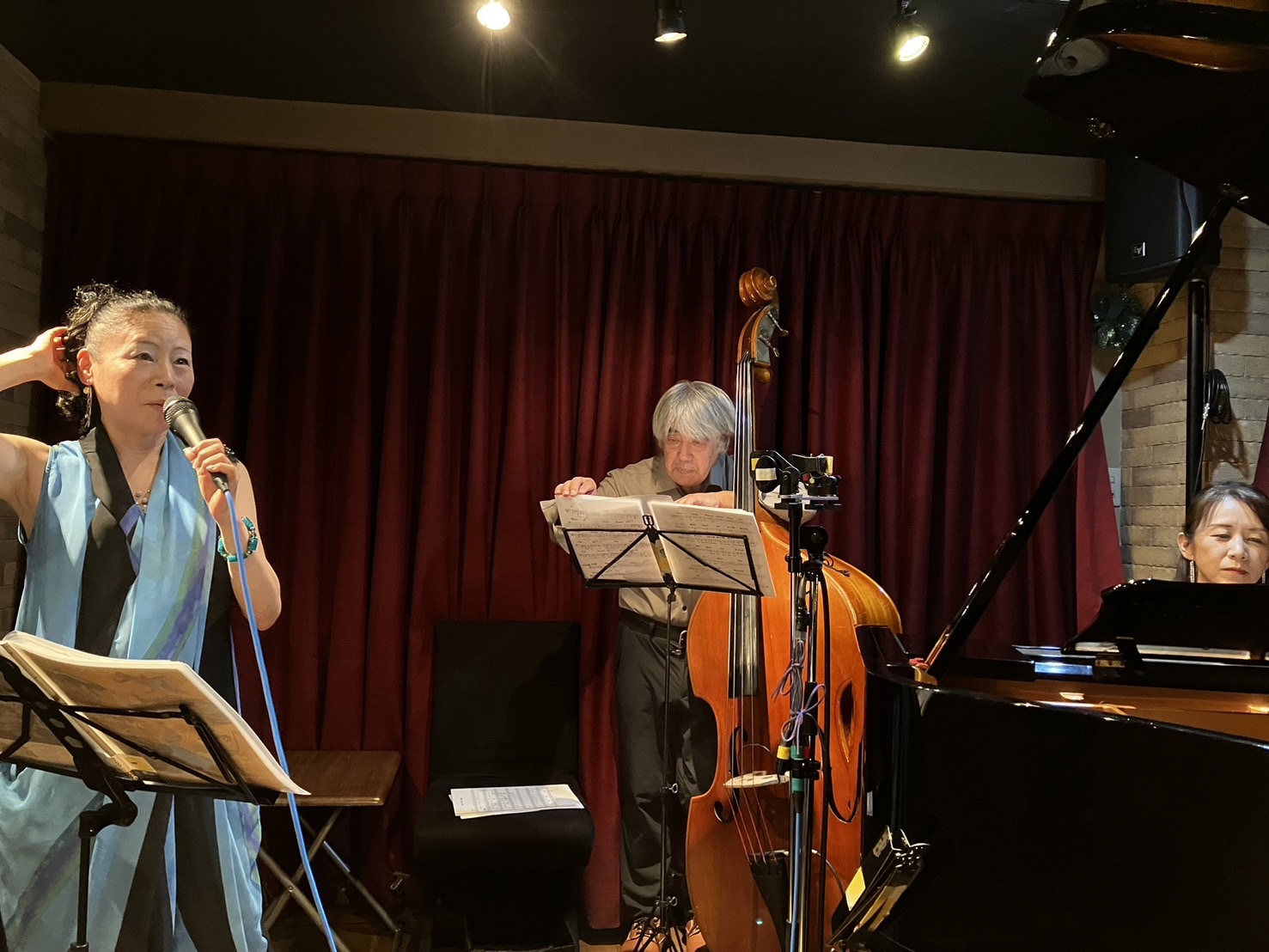 初めてご一緒する重松真美さんの繊細かつセンス抜群のピアノと田代さんのどっしり安定したベースでとても気持ちよく歌わせていただきました。