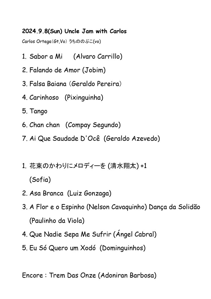 Uncle JamでのCarlos Ortegaとのデュオライブに来てくださった皆様、本当にありがとうございました。夕方お店に入ってから突然の大雨。30分ほどで上がりましたが、本当に「ゴーッ!」という音とともにまるで壁になったような雨でびっくりしました。