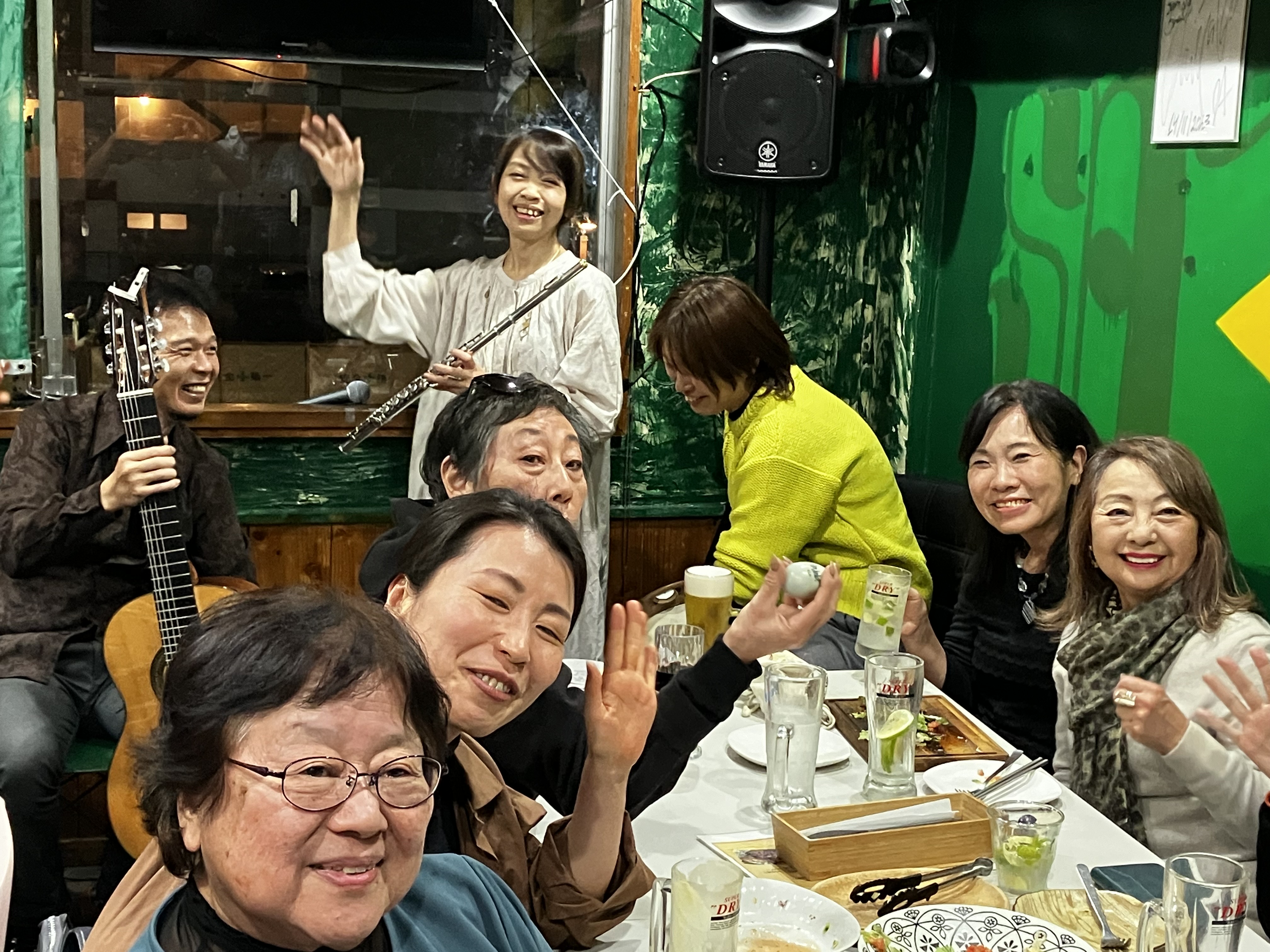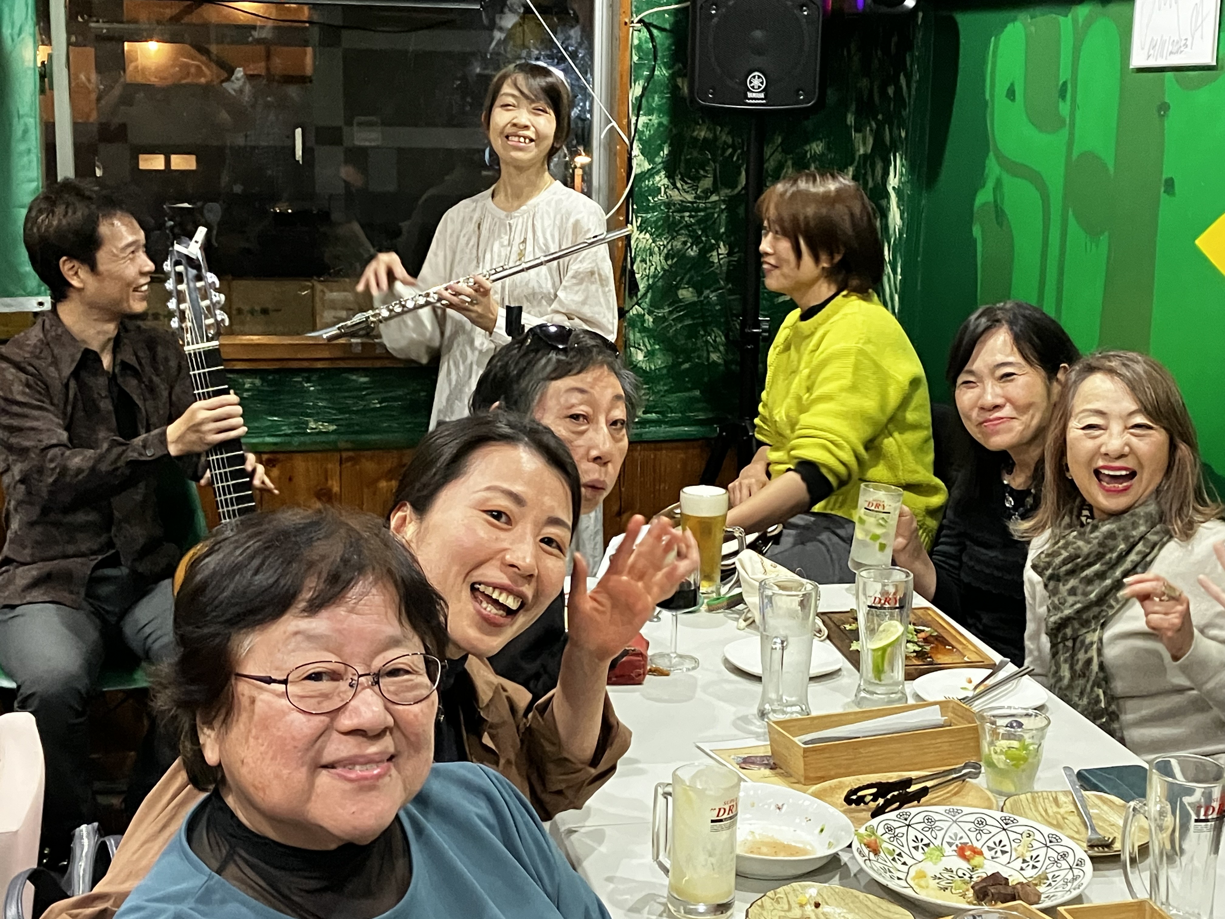 でも、あの方もこの方も、皆さんがとにかく笑顔。美味しい料理に、美味しいお酒に、そしてシェフのダンスに笑い転げ、みなさん一緒に歌ってくださり、本当に楽しいライブでした。