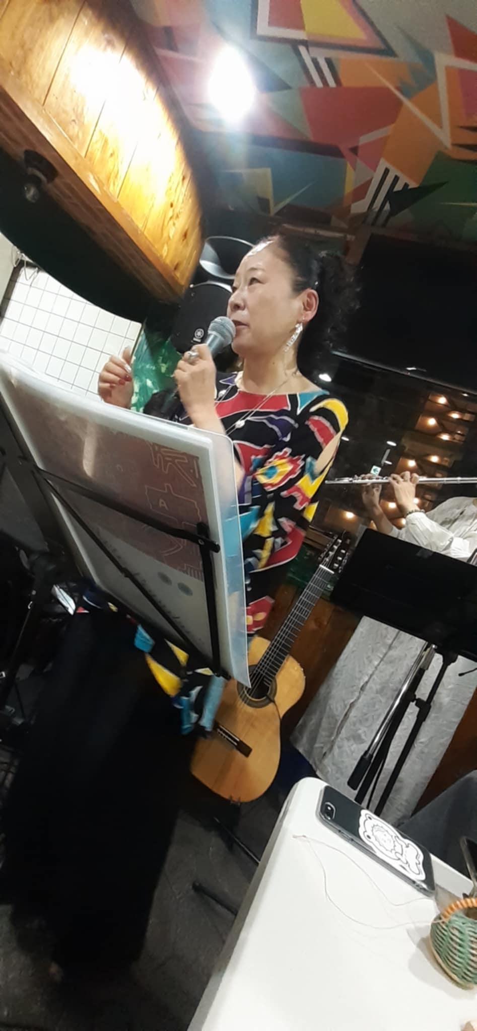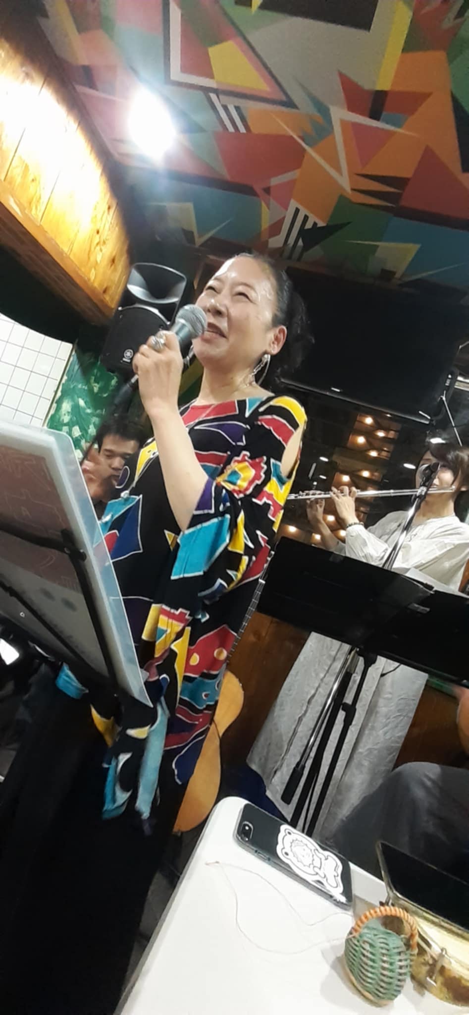 いつも応援してくれる仲間に加え、オンライン講座や他の人のライブでお見掛けしていた方(お互いに顔はわかっているがお話していない)や、昼間の仕事の仲間がサプライズでのご来店。「いっちょ、うちのの歌を聴いてやるか」と思ってわざわざ休日にでかけてくださる。本当にありがたいことです。職場のみんなが誘い合って、というところがまた喜び倍増でした。本当に「人」に恵まれた人生でございます。