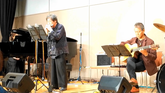 アドリブ(書いてあるのでアドリブではありませんが、変奏部分)はたくさん間違っていたようですが、テーマのアウフタクトがきっちり感じられていましたし、ちょっと伸び縮みしてしまったところさえrit.掛かってる!と思わせるものでした。実際は、意図的ではないんで、これがカラオケだったらここで曲は崩壊してしまうのですが、そこは井上善日居さんのギターがすっと寄り添って下さり、まったく自然に聞こえておりました。