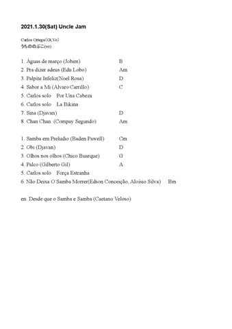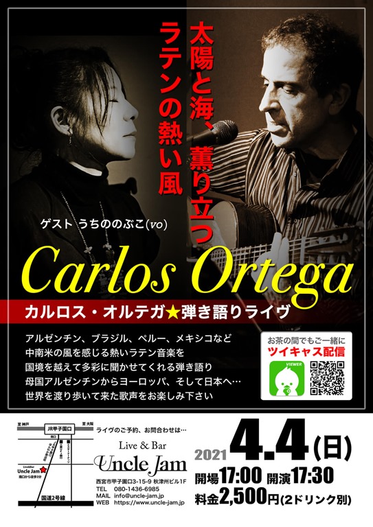Uncle JamでのCarlos Ortega&うちののぶこ ライブに来てくださった皆様、配信を視聴してくださった皆様、ありがとうございました。緊急事態宣言を受けて、17:30から、という夕暮れライブでございました。