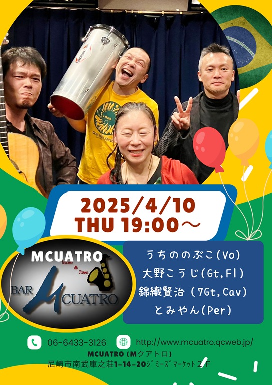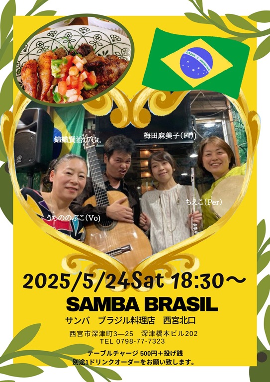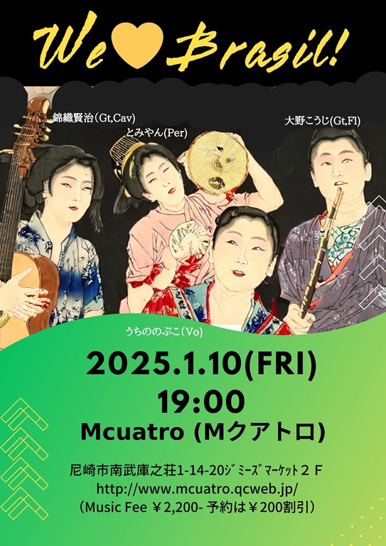 We Love Brasil ! 回を重ねてさらに息ぴったりの4人でお送りするBrasilの名曲の数々、是非お越しください。