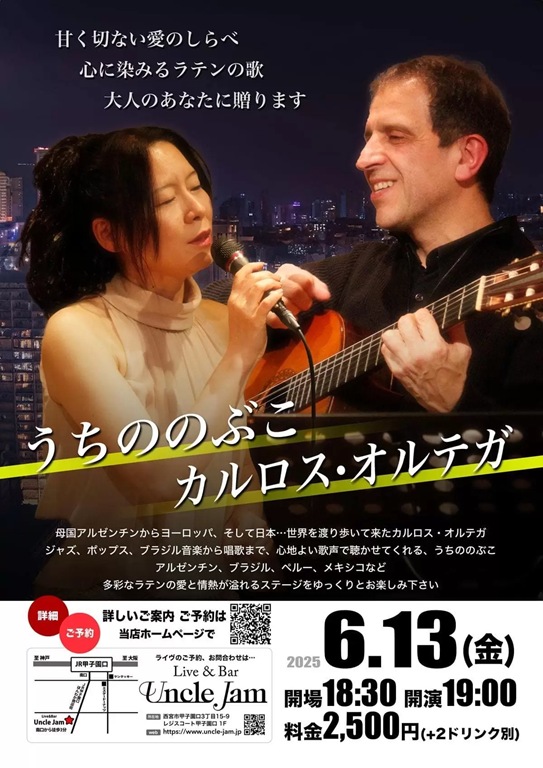 仕事納め???師匠カルロスとのライブ、カルロスの祖国アルゼンチン、ブラジル、キューバ・・・南アメリカの音楽をたっぷりとお送りいたします。年末の慌ただしい時期、スタート時間を少し早めております。