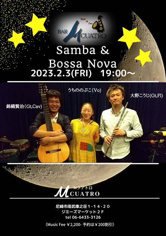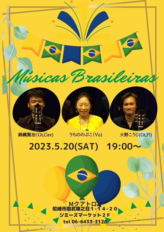サンバ・ショーロ・ボサノバから現代の曲まで、色々取り揃えておおくりいたします。是非ご参加ください。お待ちしております。