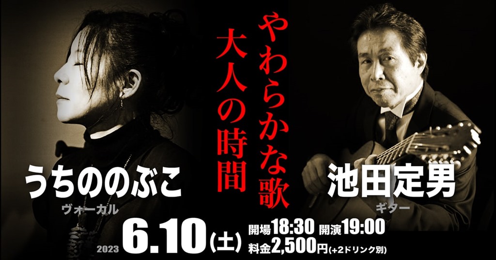 関西を代表するマルチなギタリスト、池田定男さんとのライブ、毎回何を歌おうか、と考えるところからもう楽しい!今回もジャズ、フュージョン、ポップス、と盛りだくさんでお送りします。