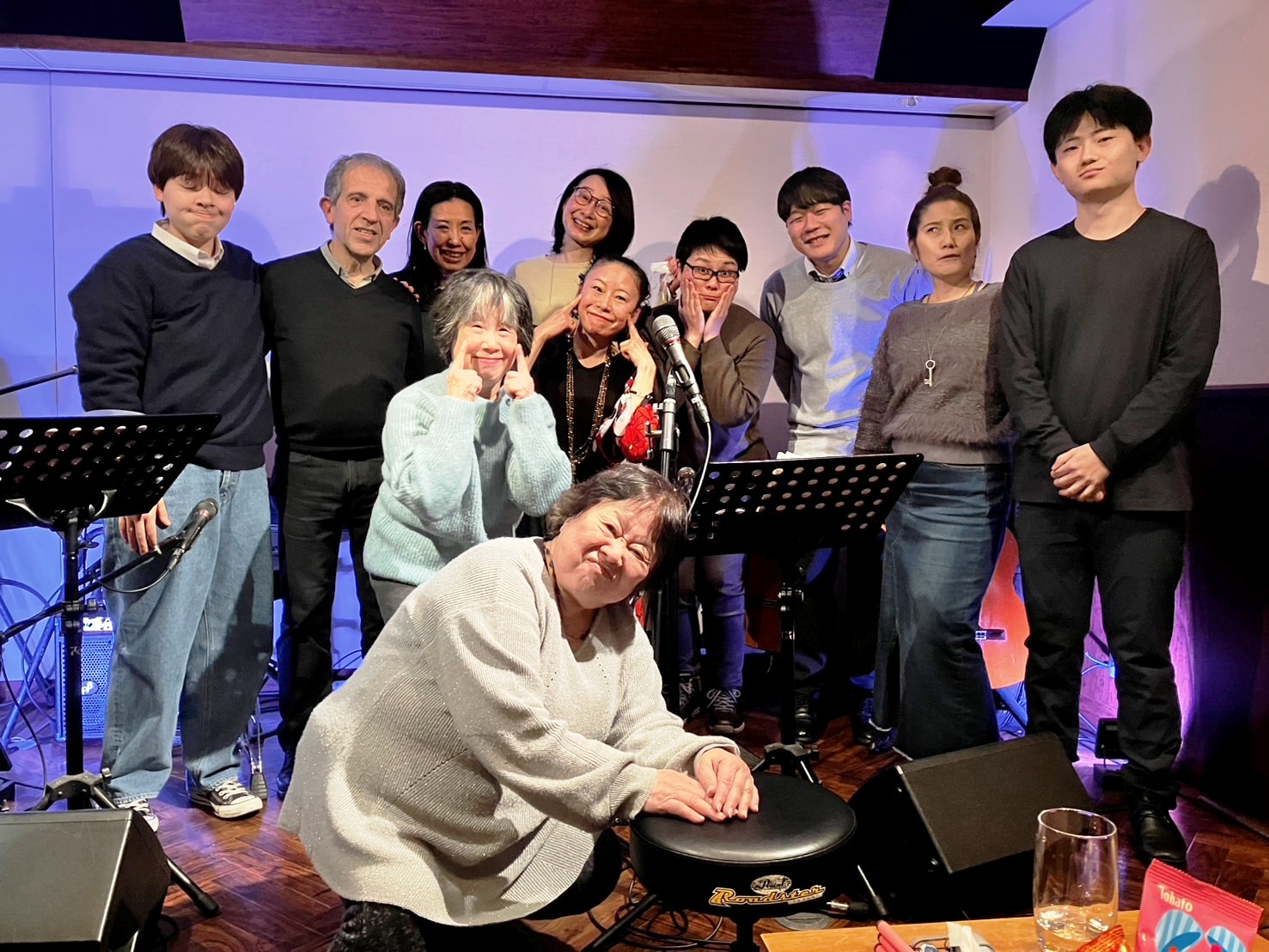 イベントの最終、21時からの演奏で、お客さま皆帰られた後では??と少々不安を感じていましたら、他会場で演奏を終えたミュージシャンを始め沢山の方に来ていただき、感激でございました。皆さん踊りまくりで思いきり盛り上げて下さってうちのもテンション爆上がりでございました。