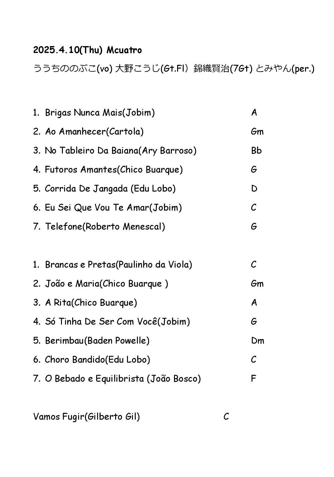 朝ごはんをしっかり食べて、今日も一日頑張ります。今日は土曜日に控えたサンバブラジルのリハ、明日はまたまたLaFiestaの面々とJKカフェライブです。