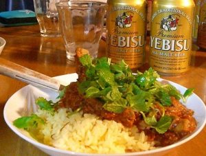 出来上がりは、すごーく辛くて、だけど甘くて、すこぶる美味に出来上がりました。(今までで一番美味しいカレーではないかと評判って・・・二人だけの意見やけど)いや、ほんと美味しかったわー。バジル、恐るべし。