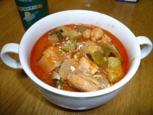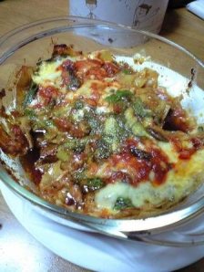 いつものカレーのレシピで、トマト類の変わりにバジルペースト、お肉は手羽中を使いました。チャツネがなかったので、代わりにアプリコットジャム、ココナッツミルクの変わりにヨーグルト。なんか代用品ばっかりですけど、しょうが、にんにく、クミンシード、コリアンダーシード、クローブ、シナモンなどのスパイス類はふんだんに入れました。