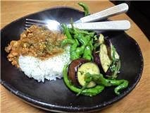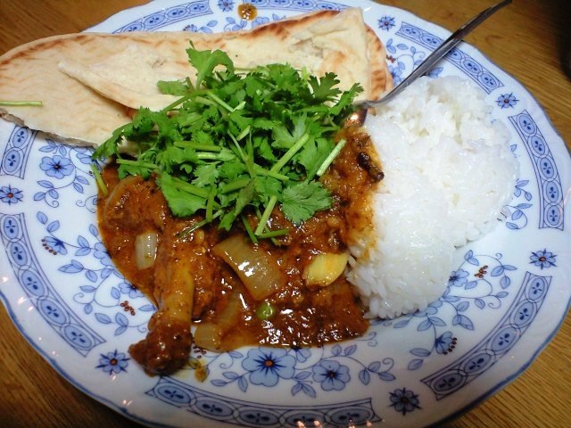 つやつやとろーり。結構たくさんバジルペーストはいっているのですが、ちっともグリーンカレーではありませんねー。コリアンダー(パクチー)は、散らすだけでなく、カレー本体にも入っております。