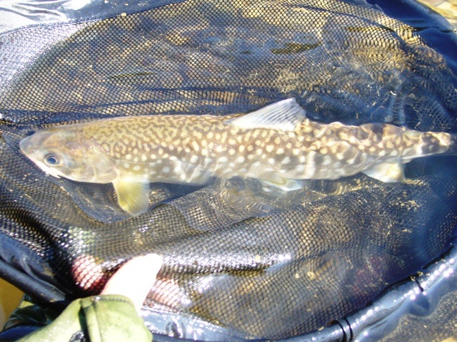 取り込んだパートナーの魚、立派なBrownです。A川のBrown、他の川よりも黄色が鮮やかで、金色に光っています。なんて美しいのでしょう!