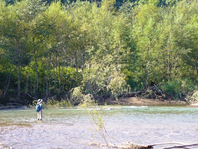 わたしたちは、もう少し上流で、アメマス狙い。もうそこまでくると、カラフト鱒は、ルアーを追うことは無いと聞きます。身体もぼろぼろになっていて、間違って釣れたりしたら胸が痛みそうでした。
