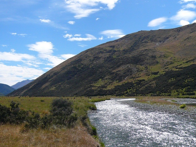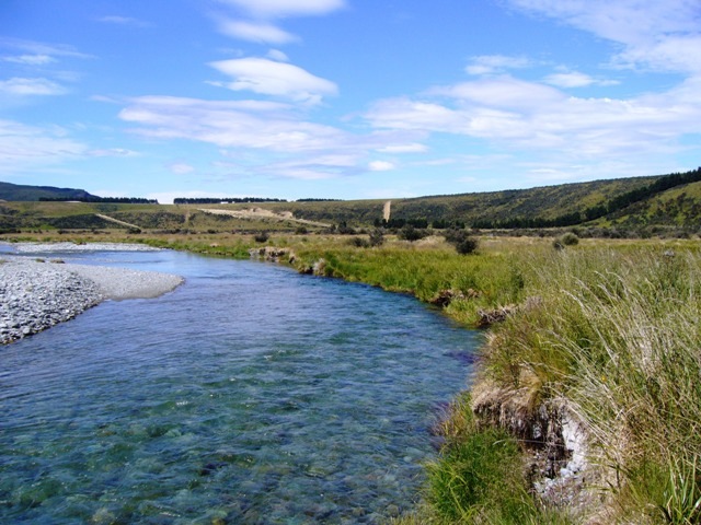ざっくり言って、日本の地形は平野部から突然険しい山岳になる・・・というところが多いので、上流部で釣り、というと山岳渓流ということになりますが、ニュージーランドの場合、岩だらけの切り立った山と平野部の間になだらかな丘陵地帯がが続いていて、そのなかをゆったりと流れているような川が多く、ヘリコプターでないと行くことができないような上流域であっても水量がかなりあります。(日本でそういうところ、といったら上高地の梓川ぐらいしか思い浮かびません。)