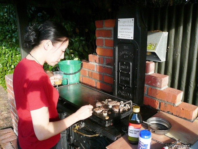 ということで、ラムの挽肉を買ってハンバーグ。共同キッチンではなく、外にあるバーベキューグリル(自由に使っていいことになっています。)で調理です。