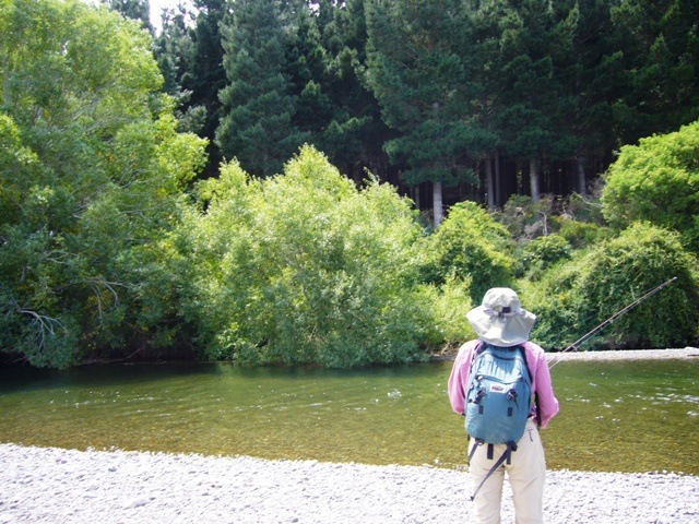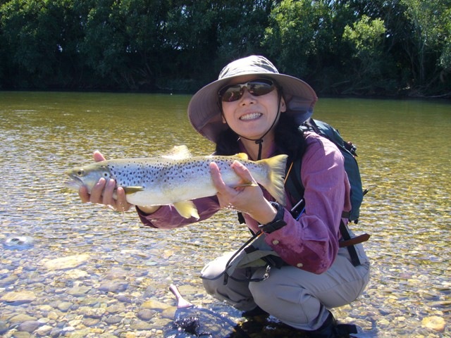 初めてニュージーランドで釣りをしたとき、現地在住の友人が、ガイドを手配してくれていて、友人、わたしたち夫婦、フィッシングガイドの4人での釣行でした。あちらのフライ・フィッシング(そのときは、フライも挑戦していて、わたしはフライに関しては初心者でした。)では、サイト・フィッシングといって、先に魚を見つけてから釣るのが一般的であること、ガイドなら、その日のコンディションが良いであろう川に確実に連れて行ってくれること・・など、はるばる日本から釣りにやってくる二人に、ぜひとも魚を釣らせてあげよう、という友人の心遣いでした。
