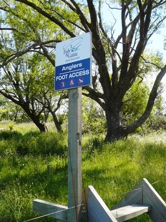 アクセスサインがある場所からは川に入っていけます。個人の農場を通っていくようなルートも、あらかじめ許可がとってあるということです。ただし、家畜を傷つけないことはもちろん、ゲートなどは、必ず見たときのままにしておくのがお約束。(公道から直接川に出られる場所、湖はアクセスサインがなくても入って構いません。サインがないところでは釣り禁止、ということではないのです。ただし、個人の土地を横切る場合は必ずランドオーナーの許可が必要。これは当たり前のことではありますね。)