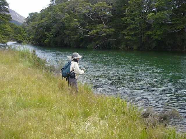 前日とは別の場所からA川に入って、流れの前に立ったとき、「ああ、またしばらくNZの川とは会えないのね」と思うと、寂しさで一杯になりました。思い切り味わっておかなくっちゃ。
