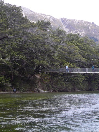 見てください、この透明度。ニュージーランドの川は、街中でもかなりの透明度を保っている川がほとんどですが、色は様々です。よき羊飼いの教会が観光スポットになっている、テカポ湖の、絵の具を溶いたようなブルーは有名ですが、あのような、水色の川もありますし、深い藍色の川もあります。西側沿岸の川は、紅茶のような色をした川も多いです。これは濁っているのではなく、森からタンニンが多く溶けこんでいるせいだそうです。A川は・・・・黄味を帯びたグリーンでしょうか。日本の緑茶みたい。